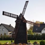 Wiatrak ma prawie 3 m wysokości, a każde ze skrzydeł po 2,05m. Całość osadzona jest na betonowym fundamencie. Skrzydła wiatraka zamocowane są na łożyskowanej osi,